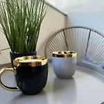 Découvrez le confort ultime dans la cuisine d'Appartement Urban Escape, équipée d'une cafétière/théière électrique, d'un réfrigérateur et de la vaisselle. L'arrêt de bus Tas se trouve à côté de l'appartement.